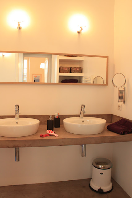 El dormitorio principal se conecto a un dressing tomado sobre parte de la oficina, y a un bano en-suite creado en una esquina de la pieza. La oficina se achico, pero con estanterías hasta los 3m50 de alto, y una vista a los techos de Marseille, es un lugar muy agradable para trabajar.