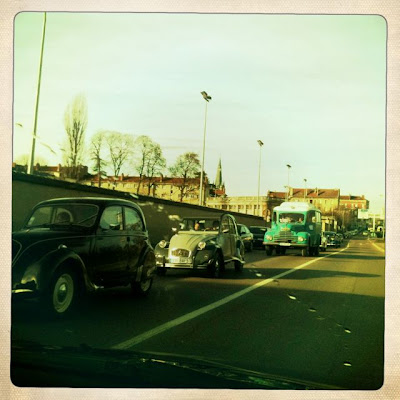 La mayoría de las atracciones son de noche, pero tuvimos la suerte de cruzar este desfile de autos antiguos paseando por la ciudad!